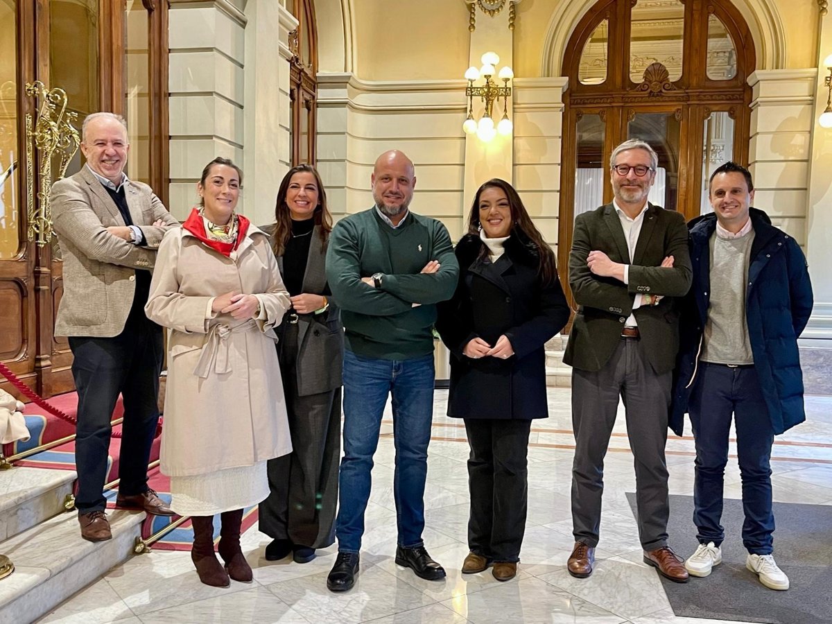 El portavoz nacional del Campo de Vox, Rodrigo Alonso, junto a integrantes de Vox Asturias en la Junta General.