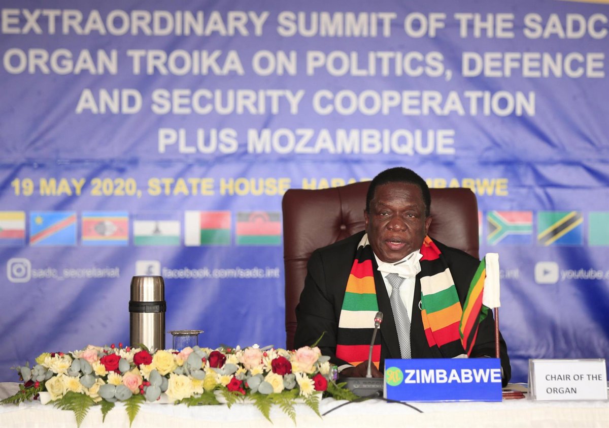 Archivo - (200520) -- HARARE, May 20, 2020 (Xinhua) -- Zimbabwean President Emmerson Mnangagwa addresses the Extraordinary Summit of the Southern African Development Community Organ Troika on Politics, Defense and Security Cooperation Plus Mozambique in