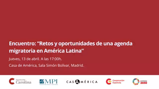 Fundación Carolina y Migration Policy Institute, celebran el Encuentro: "Retos y oportunidades de una agenda migratoria en América Latina", el próximo jueves 13 de abril a las 17:00h, en la Sala Simón Bolívar de Casa de América (Madrid).