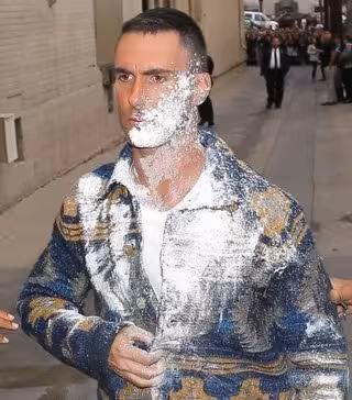 Un hombre fue quien manchó de azúcar la cara y la ropa del cantante, quien se acercó a los fans antes de participar en el show de televisión de Jimmy Kimmel. El atacante fue detenido rápidamente por el equipo de seguridad del estudio hasta que la policía se lo llevó detenido.