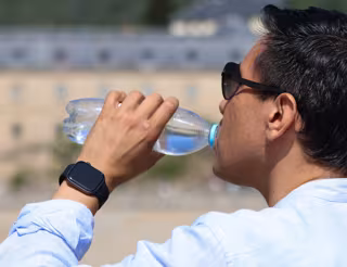 Archivo - Un hombre bebe agua durante la ola de calor, a 30 de junio de 2025, en Madrid (España). Las 17 comunidades autónomas están en alerta por altas temperaturas en el segundo día de la ola de calor. Sevilla alcanza los 42 °C y otras ciudades como Zar