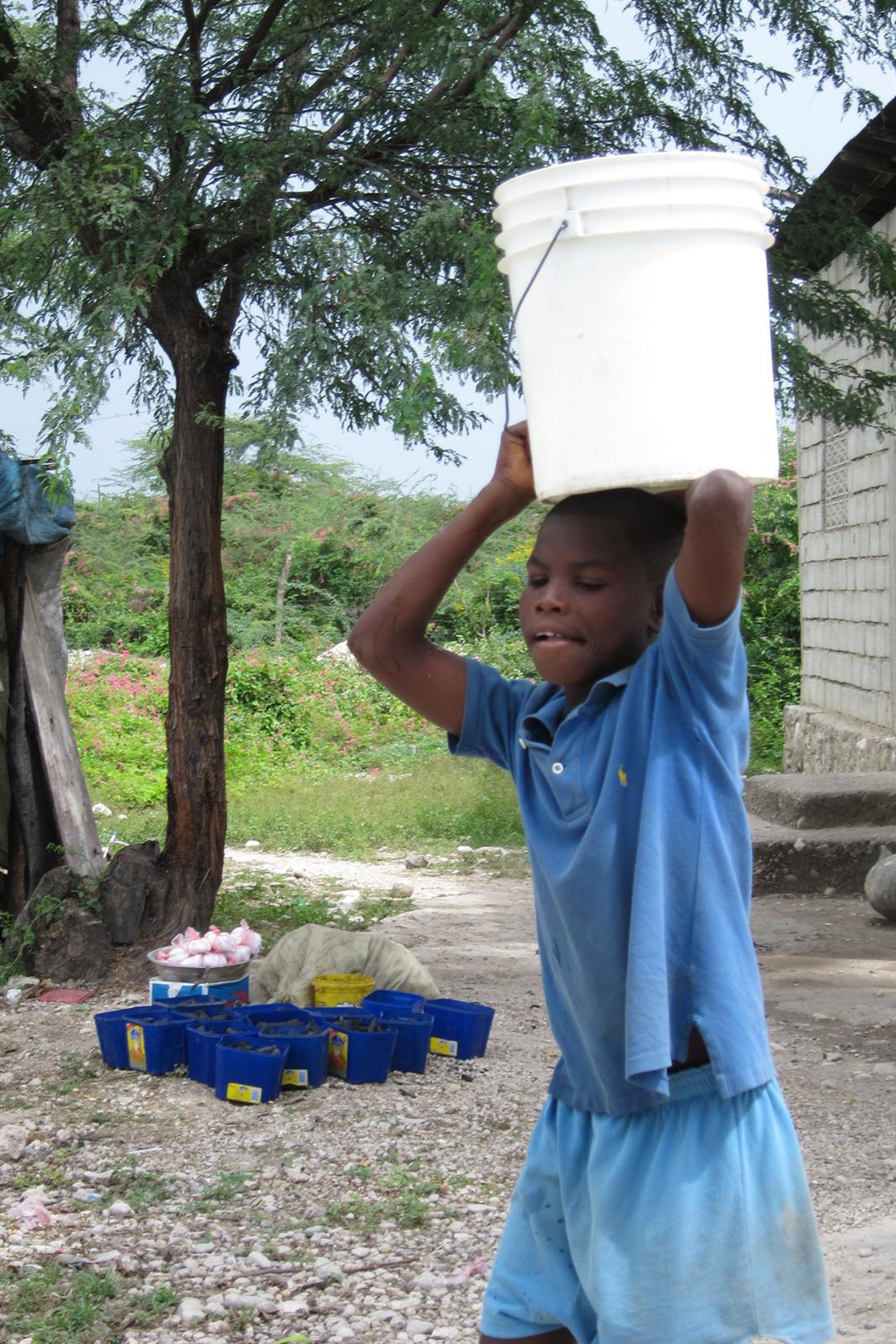 Niño Lleva Un Cubo De Agua Sobre Su Cabeza, Haití