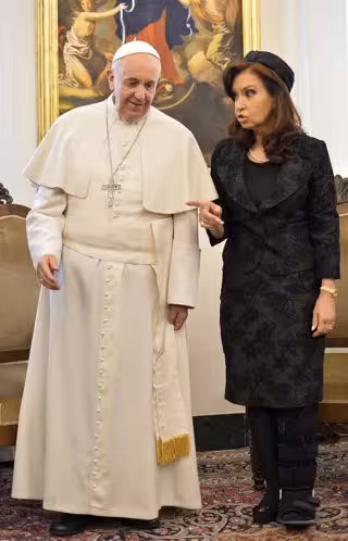 Fernández ha sorprendido al aparecer en la residencia de Santa Marta, donde la esperaba el Papa para almorzar, unos minutos más tarde de lo previsto y con una bota ortopédica que cubría su pie izquierdo.