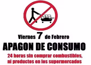 La campaña que posee además la cuenta de Twitter @apagondeconsumo, donde promueve los hashtag #apagondeconsumo y #7f, destaca: "24 horas sin comprar combustibles, ni productos en los supermercados, hagamos valer nuestra fuerza como consumidores y hagámonos respetar como ciudadanos".
