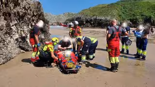 Rescate de dos hombres, familiares entre sí, del agua en la playa de Berellín, San Vicente de la Barquera: uno, de mediana edad, falleció, y el otro, de 67 años y natural de Santander, respondió a la reanimación y fue evacuado en helicóptero a Valdecilla