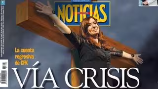 La portada de una revista de circulación nacional 'Noticias', que muestra a la presidenta Cristina Fernández crucificada, ha provocado una fuerte polémica desde los sectores kirchneristas, que han acusado al medio de "agraviar contra la democracia".