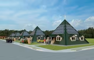 Así surgió la casa a la que denominó Piramid-all, una vivienda "antisísmica, eficiente y autoabastecida con renovables (solar, eólica y termo solar).