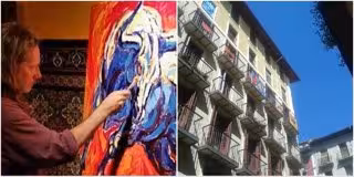 Las fiestas españolas de San Fermín celebradas todos los años del 7 al 14 de julio en Pamplona (España) son conocidas en todo el mundo. Pero este año, un argentino le dado un toque artístico decorando varios balcones de la calle de la Estafeta, frente a la Plaza de Toros de Pamplona (uno de los puntos más importantes de los encierros) colgando sus cuadros.