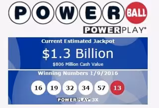 El bote de la lotería Powerball ha alcanzado los 1.300 millones de dólares --unos 1.190 millones de euros-- que se sortearán el miércoles, después de que los números de este sábado (32, 16, 19, 57 y 34) no obtuvieran ningún ganador.