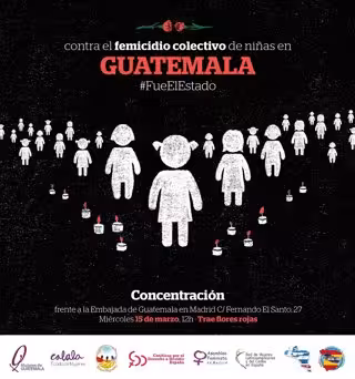 "La muerte de las 43 niñas y adolescentes en el incendio del denominado 'Hogar Seguro' de Guatemala no es un accidente: es un feminicidio colectivo cuyo máximo responsable es el Estado", denuncian desde la organización, que detalla que la protesta tendrá lugar en la calle Fernando El Santo 27, en Madrid.