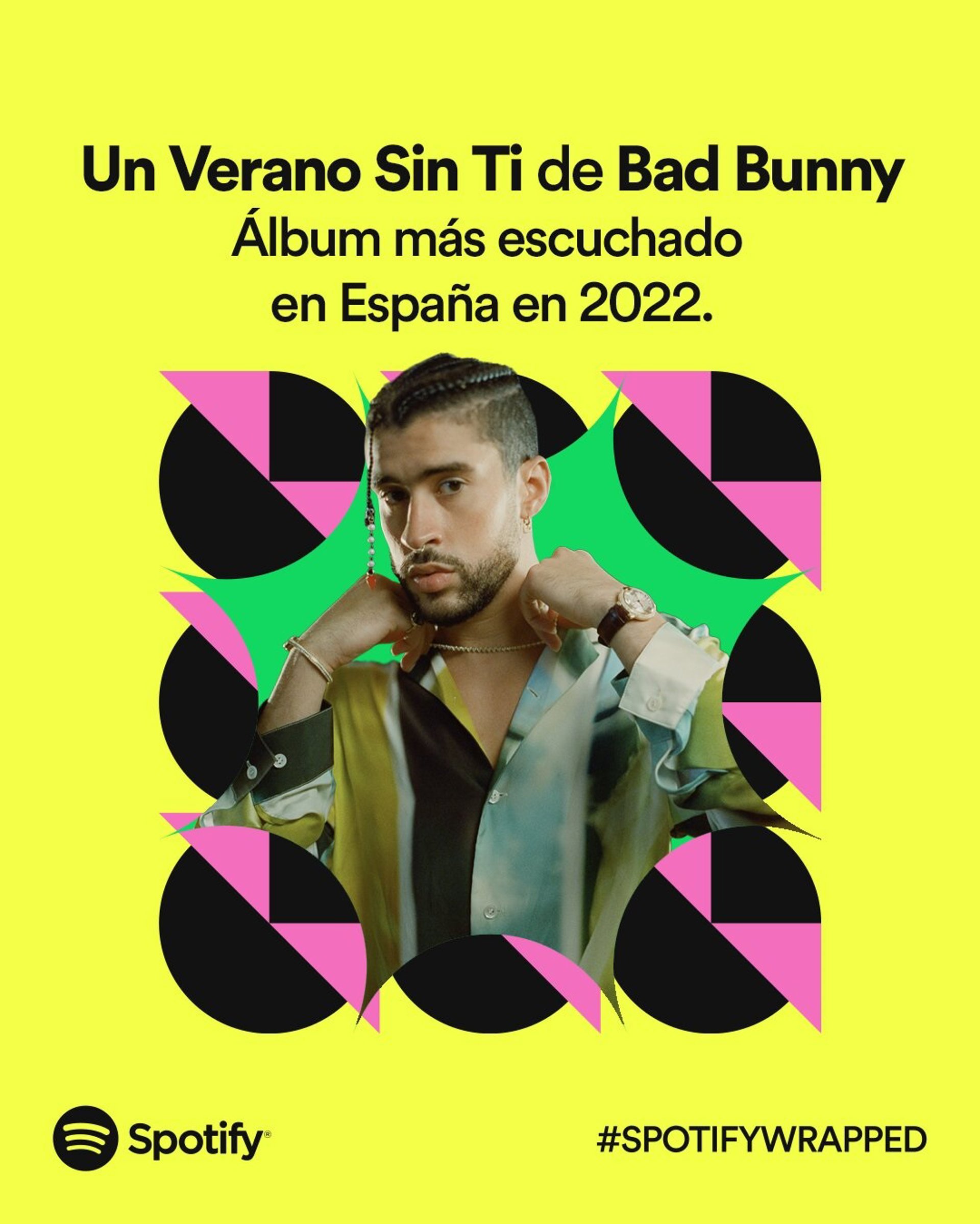 En el caso de España, Bad Bunny también es el artista más escuchado, seguido de Rauw Alejandro, y la tercera Quevedo, quien se corona como el artista español más escuchado del año en España. Así, Quevedo continúa este año acumulando récord tras récord tras ser también el artista más escuchado del verano gracias a su colaboración con Bizarrap, el reconocido productor argentino.