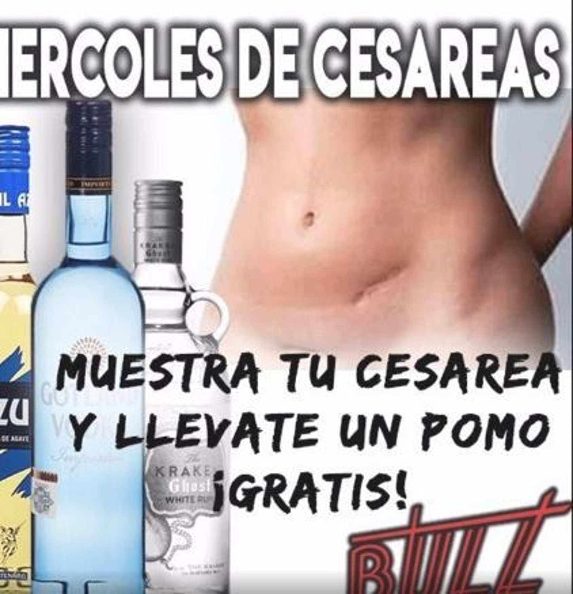 Un bar situado en Cuernavaca, México, desató una tremenda polémica en las redes sociales después de publicar una promoción en la que pedían: "muestra tu cesárea y llévate un pomo --botella de alguna bebida alcohólica-- gratis".