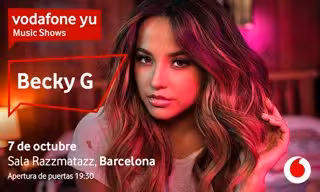 Becky G protagonizará en Barcelona un nuevo Vodafone yu Music Show. la estrella latina actuará el domingo 7 de octubre en la Sala Razzmatazz. Para aquellos fans que no puedan asistir, el concierto se emitirá en directo por streaming a través de www.vodafoneyumusicshows.es.