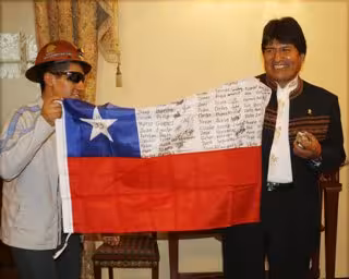 "Estoy muy agradecido, no me esperaba algo así", dijo Mamani desde el Palacio de Quemado, donde se reunió con el mandatario, a quien le entregó una bandera chilena firmada por todos sus compañeros de reclusión.