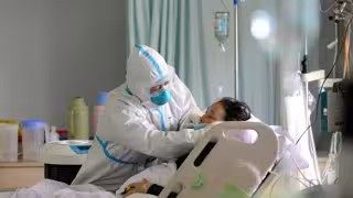 Un médico militar atiende a un paciente enfermo de coronavirus en la unidad de cuidados intensivos, en China.