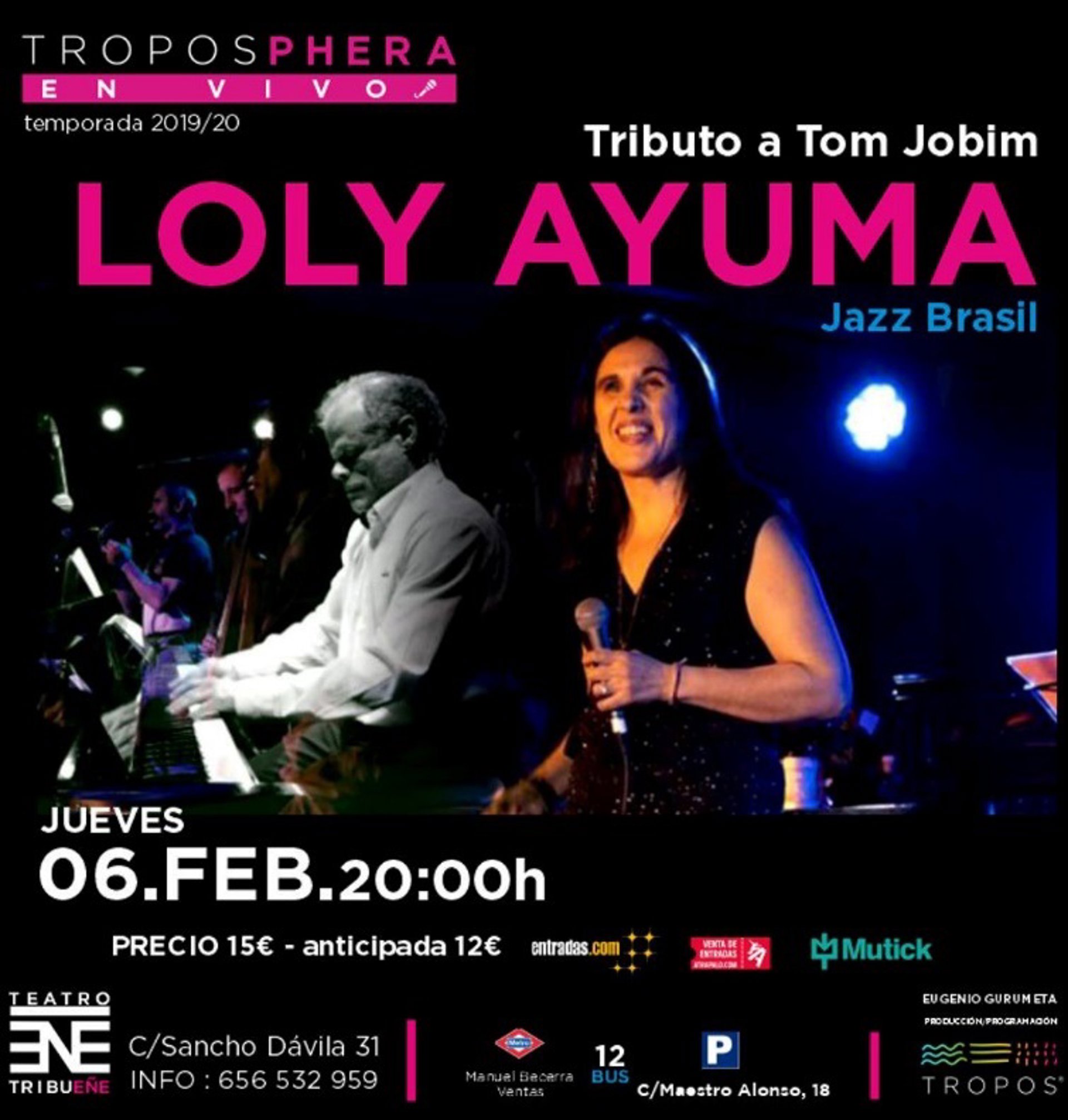 La cantante ciega Loly Ayuma ofrecerá un concierto tributo al músico brasileño Tom Jobim, que tendrá lugar el próximo jueves 6 de febrero, a las 20.00 horas, en el Teatro TribuEñe de Madrid, según ha anunciado la ONCE.