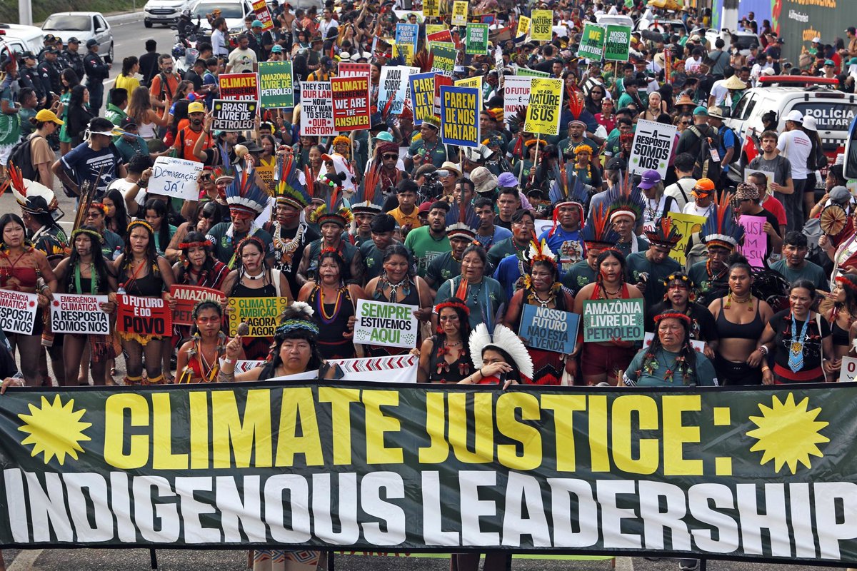 17 November 2025, Brazil, Belem: People take part in a march by Indigenous communities under the slogan "We are the answer," held alongside the COP30 world climate conference. Photo: Bruno Peres/Agencia Brazil/dpa - ACHTUNG: Nur zur redaktionellen Verwend - Bruno Peres/Agencia Brazil/dpa