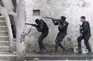 Policía militar brasileña entra en una favela de Rio de Janeiro
