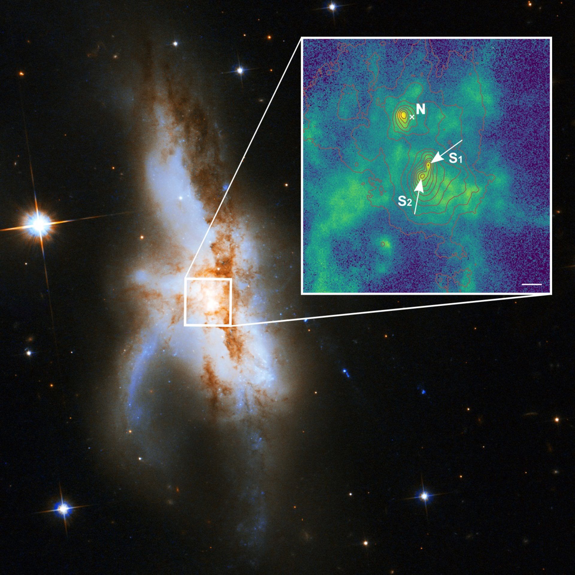 Dada su morfología, los astrónomos creían hasta ahora que se había formado por la colisión de dos galaxias más pequeñas y que, en consecuencia, albergaba dos agujeros negros supermasivos en su interior, informa el IAC en una nota.