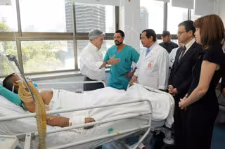 El presidente de Chile, Sebastián Piñera, visitando a los presos heridos en el i