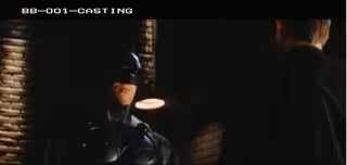 En este clip los fans del hombre murciélago se encotrarán con varias curiosidades. La primera de ellas es que Bale hizo la prueba enfundado en el mismo traje que lució Val Kilmer en 'Batman Forever'. Curiosamente Warner no usó el de la última película, Batman & Robin de 1997, donde George Clooney lucía el ya famoso traje con los tan comentados