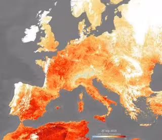 Mapa creado por Copernicus durante un episodio de ola de calor extrema en 2013./ - ESA-COPENICUS.