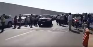 Los manifestantes se colocaron delante de los dos vehículos de la comitiva, y uno de los manifestantes dio un puñetazo al cristal, rompiéndolo y causando el revuelo de las fuerzas de seguridad.