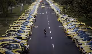 Miles de taxistas bloquean desde primera hora de la mañana de este miércoles las principales avenidas de Río de Janeiro para protestar contra la aplicación Uber, a la que acusan de competencia desleal.