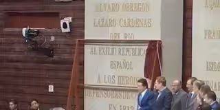 El mensaje está justo debajo del homenaje en San Lázaro al presidente Lázaro Cárdenas (1934-1940), quien "abrió las puertas de México" al exilio republicano.
