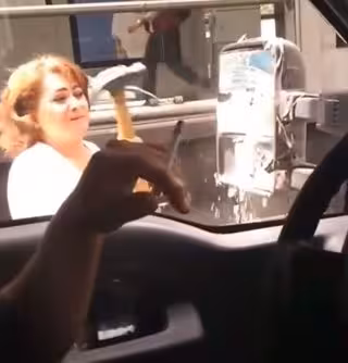 Con dicho objetivo, la mujer sacó del maletero de su automóvil un martillo y golpeó el espejo retrovisor izquierdo de la camioneta. Asimismo, continuó dañando con martillazos más severos otras partes del vehículo, pero parece ser que el tráfico y la prisa pusieron freno a "Lady Martillo".
