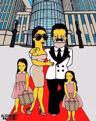 La esposa del narcotraficante Joaquin 'El Chapo' Guzmán Loera, Emma Coronel, ha sido retratada por un artista italiano al más puro estilo de 'The Simpsons', afamada serie de dibujos animados en la que han aparecido en varios episodios personalidades del mundo de política y la cultura internacional.