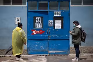 Archivo - Personas esperan en la entrada de un centro sanitario en La Paz, Bolivia, durante la pandemia de COVID-19.