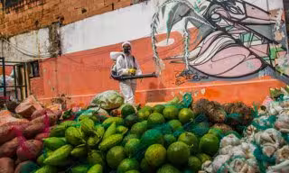 Labores de desinfección en la favela de Santa Marta, en el barrio carioca de Botafogo, en el sur de Brasil.