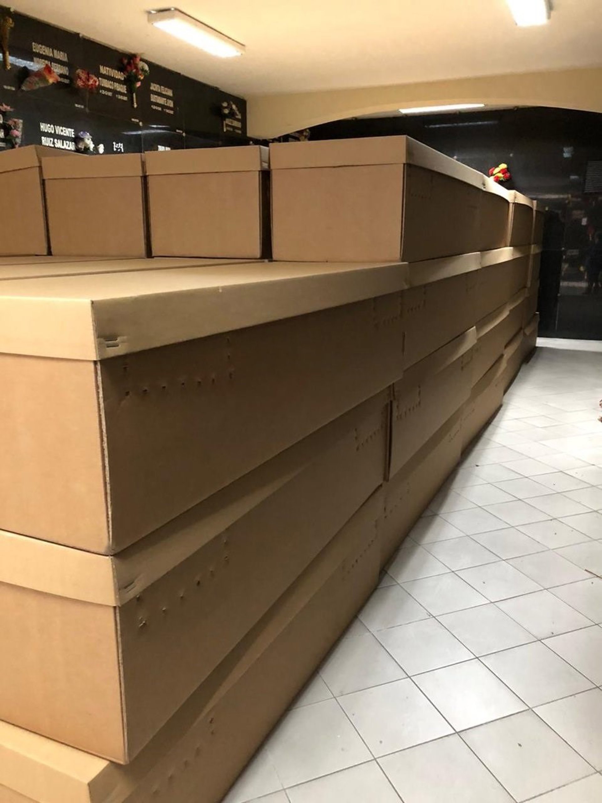 Ataúdes de cartón par víctimas del coronavirus en Guayaquil, Ecuador