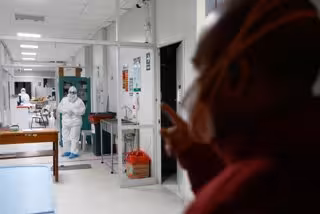 Imagen de un sanitario con un traje protector frente al coronavirus en Lima, Perú. - Karel Navarro/Ministerio de Salu / DPA - Archivo