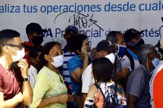 Colas para entrar en un banco de la ciudad venezolana de Valencia durante la pandemia de coronavirus