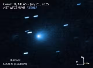 3I/ATLAS es un cometa activo. Las observaciones realizadas por el Telescopio Espacial Hubble de la NASA/ESA a principios de agosto ya captaron una columna de polvo expulsada desde la cara calentada por el Sol del cometa, así como el indicio de una cola de polvo que se desprende de su núcleo. Los cometas que se originan en nuestro propio Sistema Solar muestran un comportamiento similar.