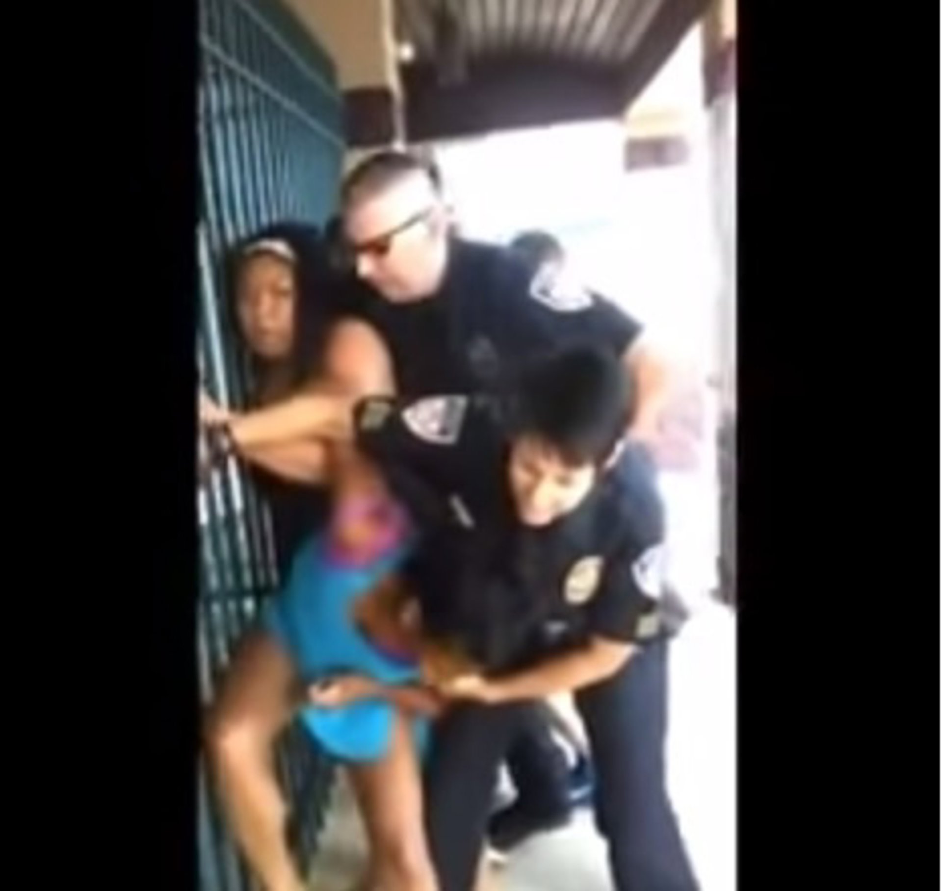 Policías intentando reducir a una niña estadounidense