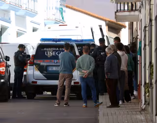 Agentes de la Guardia Civil trabajan en el lugar de los hechos bajo la mirada de los vecinos de la localidad, a 12 de marzo de 2026, en Hornachos, Badajoz, Extremadura (España). Agentes de la Guardia Civil continúan hoy con los registros en la localidad p - Jorge Armestar - Europa Press