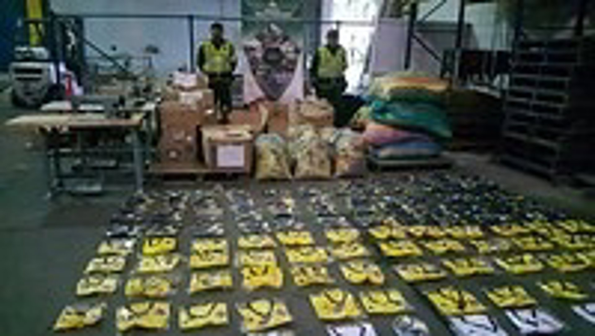 Dos personas fueron capturadas y la cifra de prendas de ropa incautadas ha sido de 3.800 camisetas, 170 bermudas y tres máquinas de confección, mercancía valorada en más de 230 millones de pesos (más de 78.000 dólares), tal y como informa 'El Colombiano'.