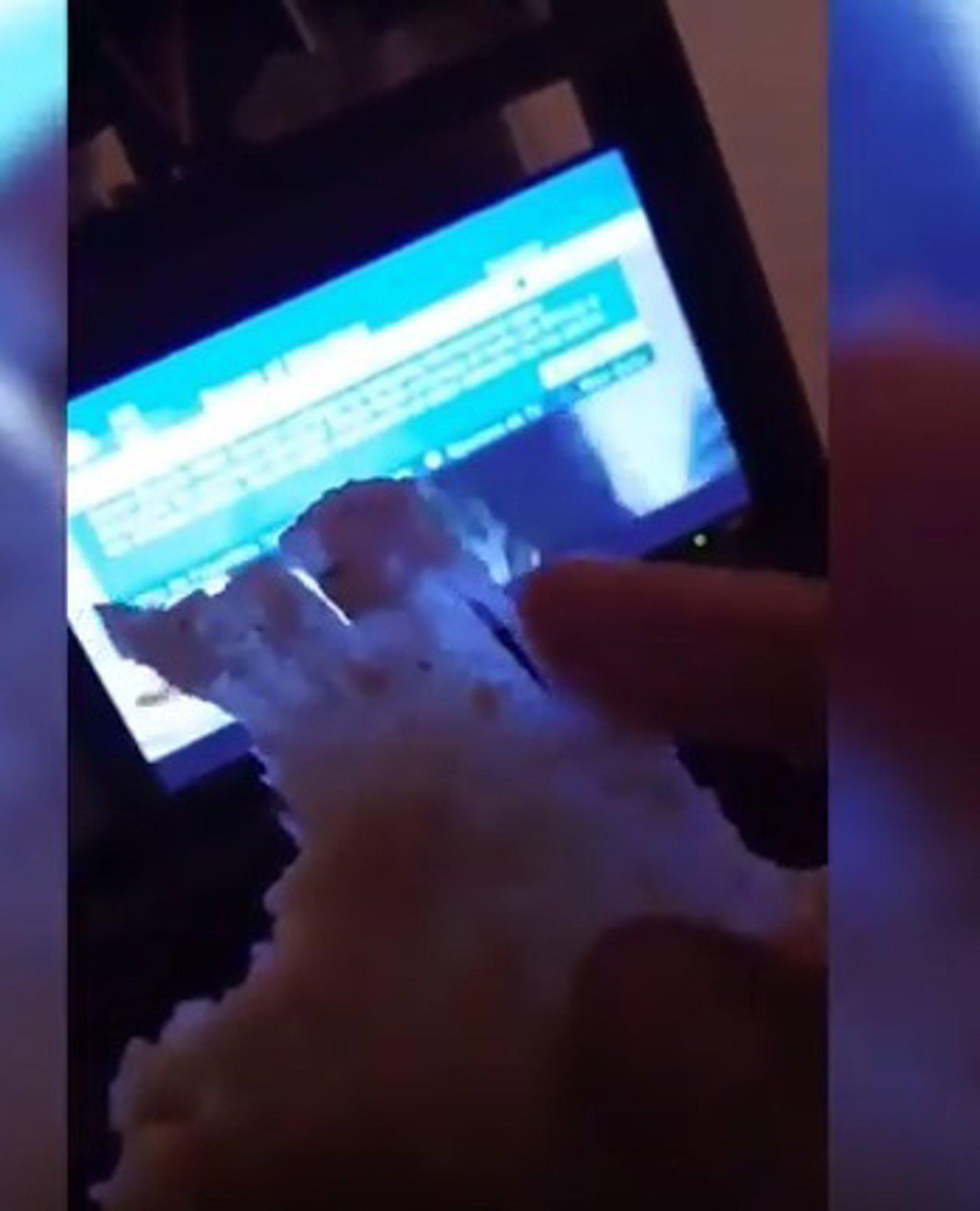 El chico dijo en el vídeo que "algunos amigos suponen que es algún tipo de plástico y otros me dijeraon que es posible que sea pollo viejo que se venció y que en lugar de tirarlo lo congelaron y después lo fetearon como hacen con los fiambres".