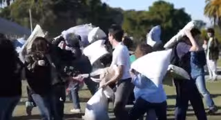 ¿Objetivo? Dar y, por supuesto, recibir 'almohadazos' hasta que caiga el último 'soldado' de la particular batalla. Esta iniciativa busca reivindicar la diversión en el espacio público, congregar a multitud de personas de todas las edades y liberarse del estrés, aunque sea tan solo 15 minutos que es el tiempo que suele durar la batalla.