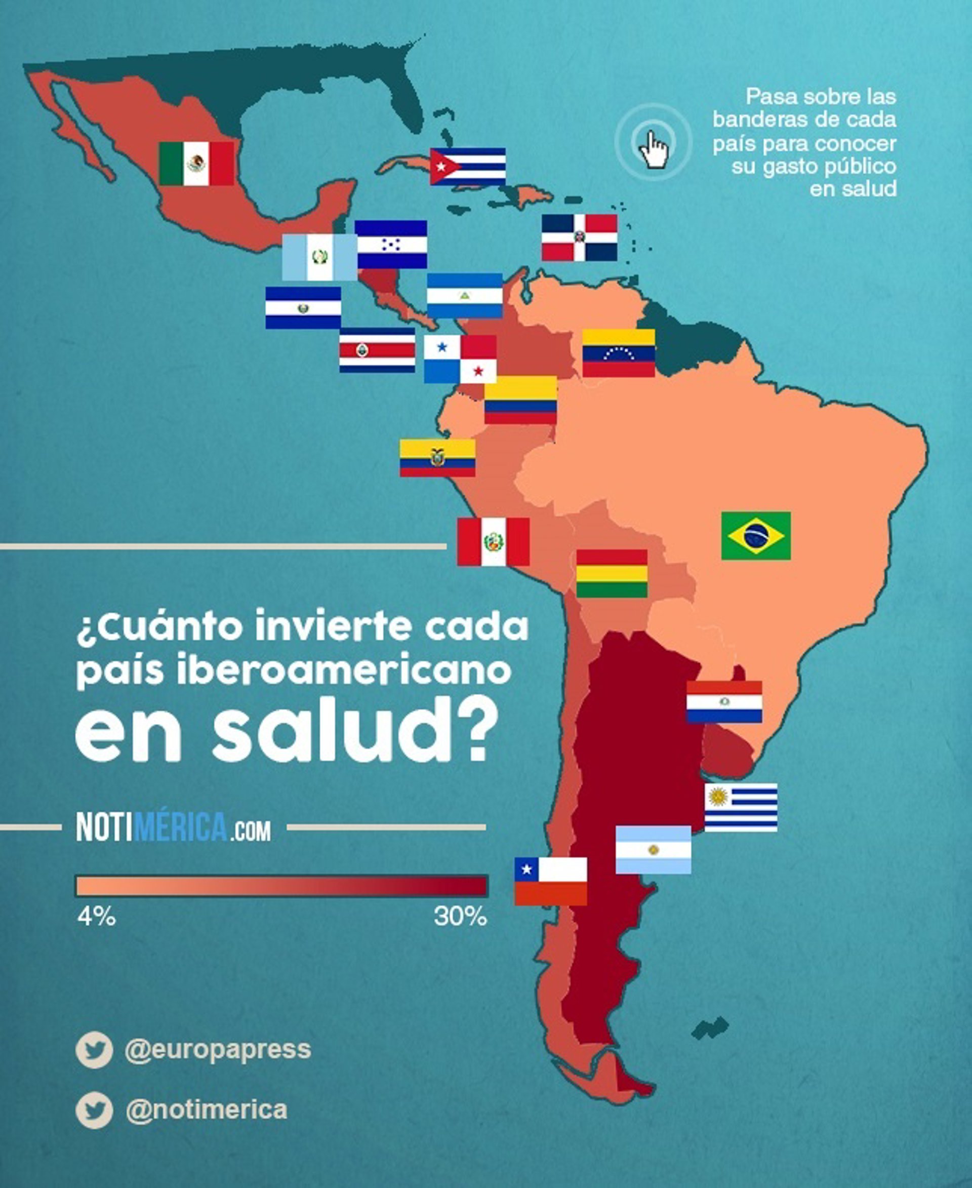 No obstante, existen grandes diferencias entre los países de la región iberoamericana en relación al porcentaje de su gasto público invertido en sanidad. Con motivo del Día Mundial de la Salud, desde Notimérica hemos elaborado una infografía con estos datos, en los que se aprecia los grandes abismos existentes en la región.