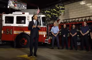 El Presidente De EEUU Barak Obama En Un Cuartel De Bomberos