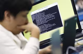 A student attends a white-hat hackers competition at the Korea Military Academy