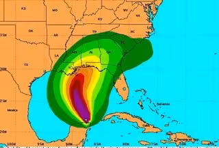 La tormenta se mueve con dirección norte-noroeste y las previsiones apuntan a que alcanzará el fin de semana la costa estadounidense a lo largo de los estados de Luisiana, Misisipí, Alabama y la saliente de Florida.
