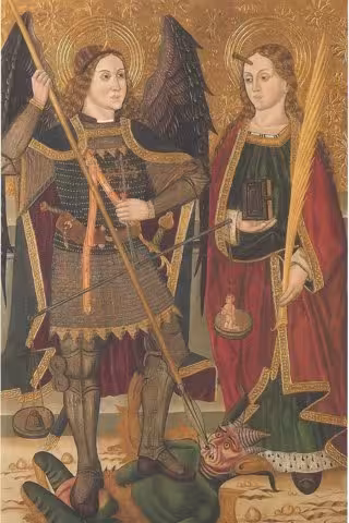 Se trata de las tablas La Virgen, el Niño y Santa Ana, quizás procedente del monasterio de Santa María de Sigena (Huesca); San Pedro entronizado con dos cardenales y San Miguel y Santa Engracia, ambas en origen en la parroquia de Marcén (Huesca).