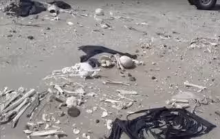Alrededor de 20 esqueletos humanos fueron encontrados este martes en una playa de Punta Pardelas, en la provincia argentina de Chubut. Los restos se encontraban dentro de bolsas negras de basura y esparcidos por la arena.