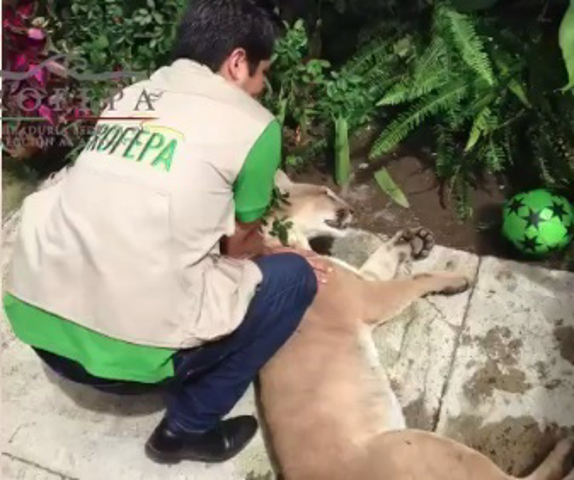 Un puma adulto fue hallado en el patio interior de una casa en Jalisco, México. El animal estaba dormido y relajado hasta que fue rescatado por el personal de la Procuraduría Federal de Protección al Ambiente (Profepa).