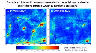 Estos son algunos de los resultados de un estudio desarrollado por investigadores de la Universitat Politcnica de Valncia (UPV), pertenecientes al Centro de Tecnologías Físicas. Para ello, el equipo de la UPV ha analizado imágenes satelitales de la misión Sentinel-5P del programa Copernicus de la Agencia Espacial Europea (ESA), comparando datos de dos periodos: del 10 al 14 de marzo, por un lado, y del 15 al 20, por otro. A partir de estos datos, han generado una serie de mapas que muestran las concentraciones de dióxido de nitrógeno en algunas de las principales ciudades españolas.